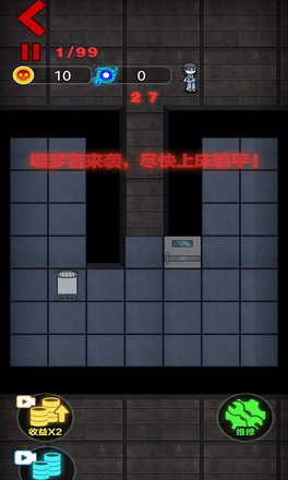 《来躺平呀》是一款趣味性十足的策略塔防类手机游戏。其画风与玩法跟《猛鬼宿舍》极为相似,不过在此基础上,增添了几种别具一格的玩法模式。在游戏中,玩家将扮演学校里的学生,为了抵御猛鬼的袭击,需要在自己的宿舍内巧妙布置各类防御设施,以此来消灭在宿舍四处游荡的猛鬼。