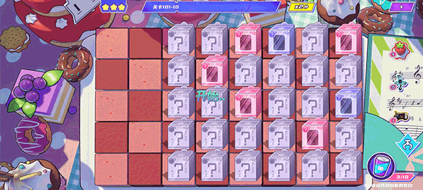 接着从末尾处开始开启盲盒(一定要等她们完成一个,处于空闲状态时,再开启下一个,切勿一口气将同一行的盲盒全部开完!!)。若开出攻击甜品,建议先放过首领一次。