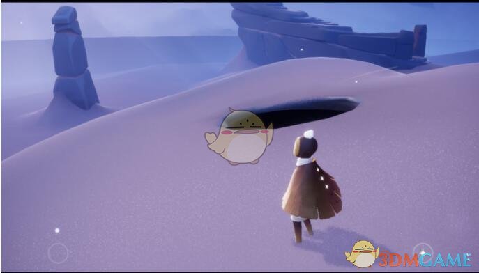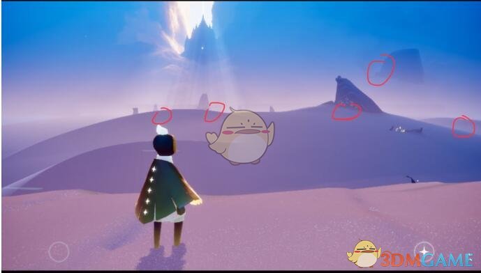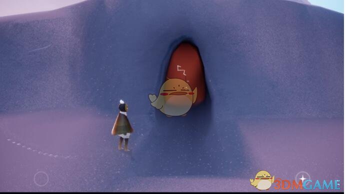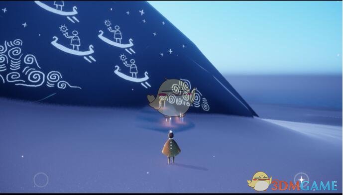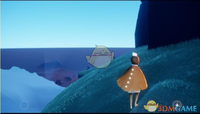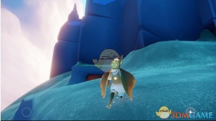刚进入场景,先爬上眼前那巨大的岩石(没错,你没听错)。我建议先进入洞中,接着从岩石后方攀爬,有一条岩石脉络径直通往山顶,注意不许飞行,如此便能获得一个光之翼(图中已获取过)。