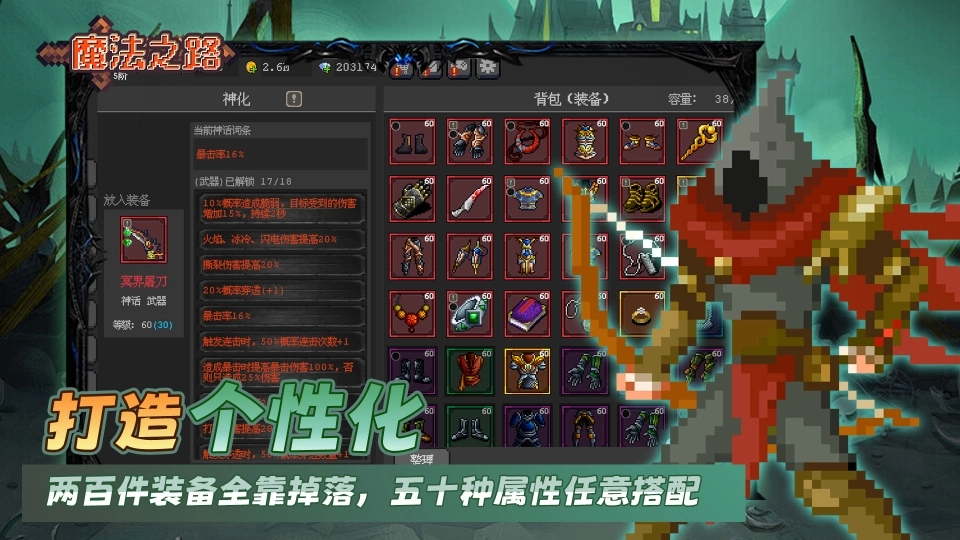 1、千变词缀装备库:每件掉落装备自带3-6条随机属性,从"吸血暴击"到"元素连锁",200+词条组合创造无限可能