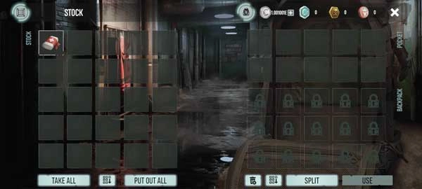 2、当玩家在一个箱子停下时,就可以点击右下方显示的拾取按钮,如果想要一键转移到背包里面,可以点击下方的“TAKE ALL”即可。