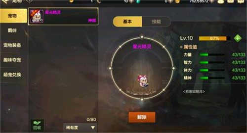 宠物可以给玩家提供额外的属性值,宠物升级后可以增加给角色提供的属性,提高力量、智力、体力、精神属性,但是每个宠物都有属性上限值。