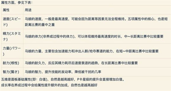 角色育成是游戏里至关重要的核心玩法,想必大家最关心的就是如何育成、怎么育成。在这篇攻略中,我将对角色育成进行总结与归纳。首先,我们要清楚游戏中的核心数值——角色的五维,即速度、体能、力量、毅力和智力。