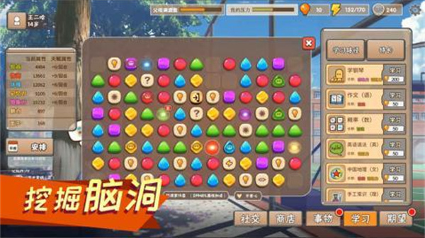 1、在游戏开始时选择比较少,玩家可以在脑力挖取时多挖一些智商和记忆力,这对后期学习的帮助很大。
