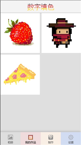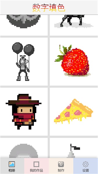 像素填色涂色是一款很适合小朋友挑战的涂色小游戏。游戏里各式各样的画面中有着不同造型,小朋友们能自由涂鸦。游戏还提供众多画笔与丰富颜色,可供自由搭配,有助于不断训练孩子们的色彩搭配能力。