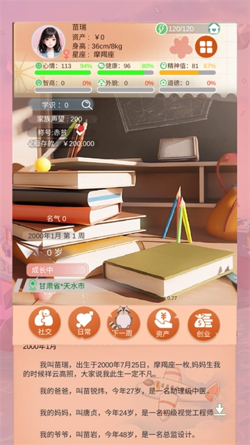 5、子代养成系统:参与子女教育,体验家族兴衰;模拟真实生育与升学环境。