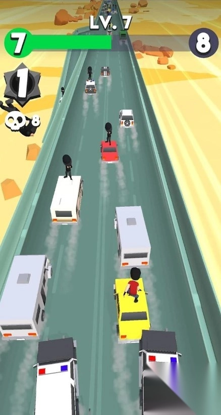 2、车顶资源网络:车顶上存在各类可供利用的资源,通过合理规划移动路线来提高效率,及时避开危险障碍物以维持平衡,灵活借助环境道具去完成高难度挑战,防止被甩出车外。