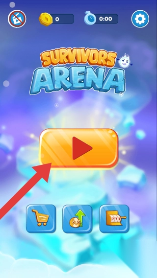 画面中设有开始游戏的播放按钮,同时显示着金币、时间等信息,下方还配备了商店、升级、任务等功能按钮。