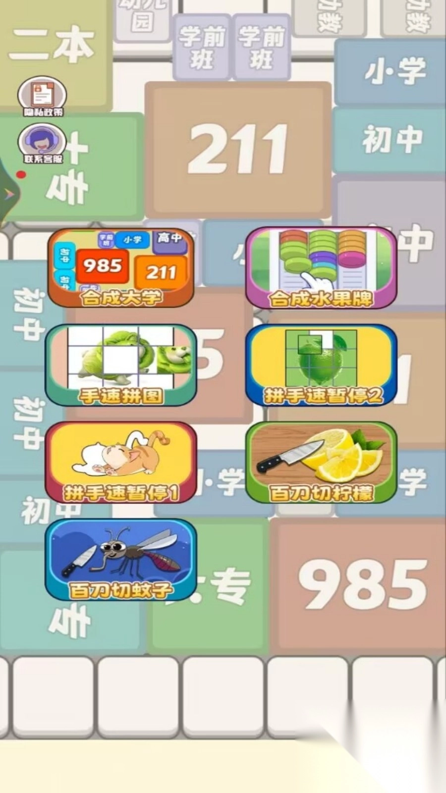 3.涵盖合成大学、水果牌合成、手速拼图、切柠檬等丰富小游戏模式,各玩法规则简易却充满挑战。