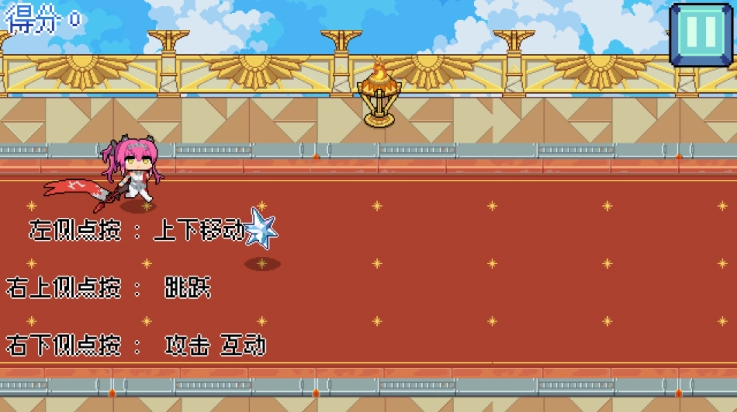 1、进入游戏后,操作方式如下:点击左侧区域可控制角色上下移动;点击右上侧区域可触发跳跃动作;点击右下侧区域可执行攻击与互动操作。