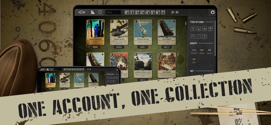 kards入口最新版是以二战为宏大背景的集换式卡牌游戏,它把传统卡牌游戏的核心要素和创新性的战略深度、战术多变性机制巧妙融合,为玩家打造出前所未有的全新策略游戏体验。在游戏里,你会成为二战中的一方主要势力,每个势力都有独特之处,有着鲜明的强项和不可忽视的弱点。你需要谨慎选择合适的同盟,精心制定克敌制胜的策略,果断发号施令,全面掌控战局,在海、陆、空全方位的战场上和其他玩家激烈对垒。