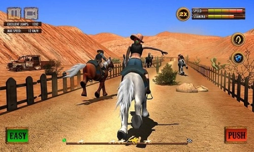 1、借助前沿的3D建模技术,精准刻画美国西部赛马场景的每一处细节,从骏马矫健的肌肉线条,到马蹄溅起的尘土痕迹,皆经过细致雕琢,旨在重现最真切的赛马感受。