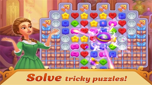1、贵族故事馆将经典三消玩法与家居装饰深度融合,通过解锁关卡获得金币与设计点,帮助庄园主人翻新大厅、卧室与花园,使每一处场景焕然一新。