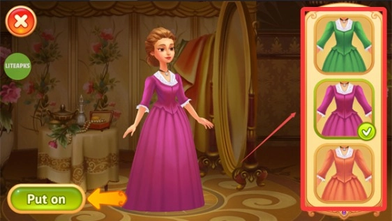 2、接着可以挑选各式各样的裙子来为角色进行装扮,点击“put on”按钮就能正式开启装扮流程。