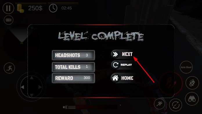 3、顺利清除关卡中的僵尸,达成任务目标后,点击NEXT按钮进入下一关,持续增强自身实力,以应对更多僵尸的挑战。