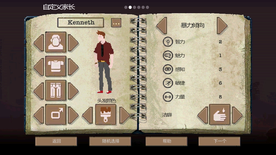 6、游戏中融入了RPG元素,家庭成员的属性、优势与劣势会随着玩家的选择而发生变化。