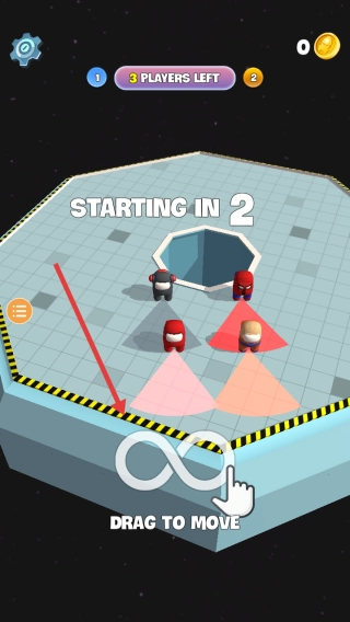 2、开局依据DRAG TO MOVE,拖动屏幕让角色位移,避开对手视野范围,坚守平台边缘,规避坠落出局。