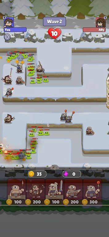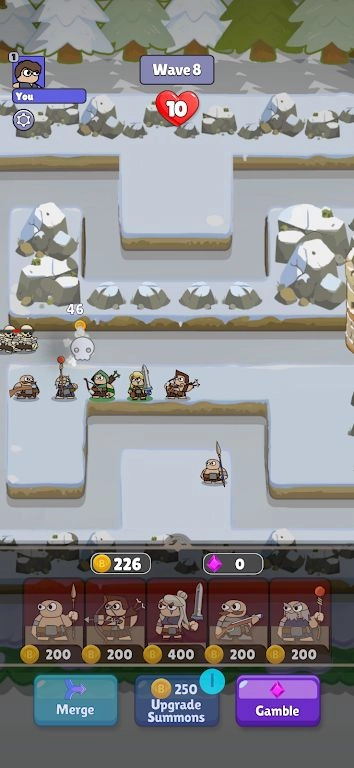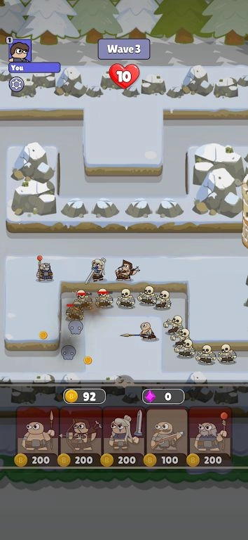 2、画质简单,没有复杂的技能特效,玩家通过简单合成,放置,阻挡敌人前进。
