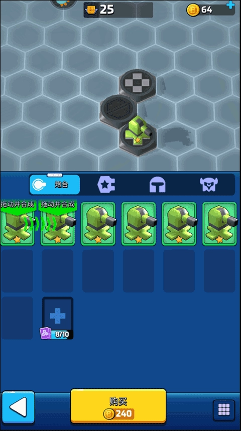 6、接下来在这里合并相同的炮塔进行升级;