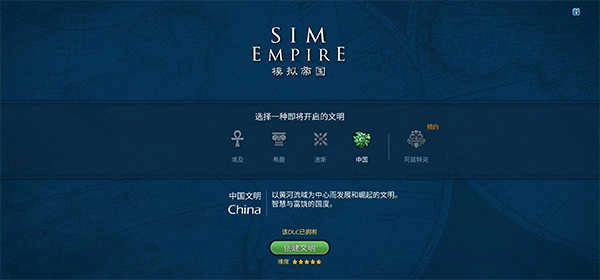 1、在本站安装并登录游戏后,首先需要创建一个文明。这里我选择的是中国,大家可以根据自己的喜好进行选择。