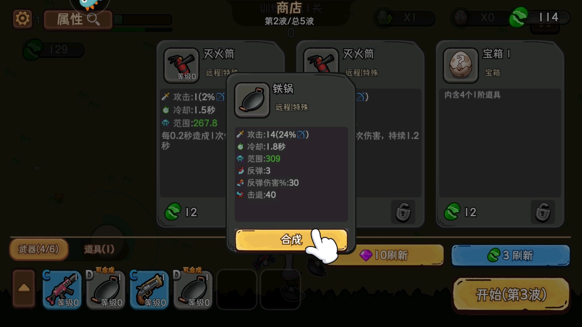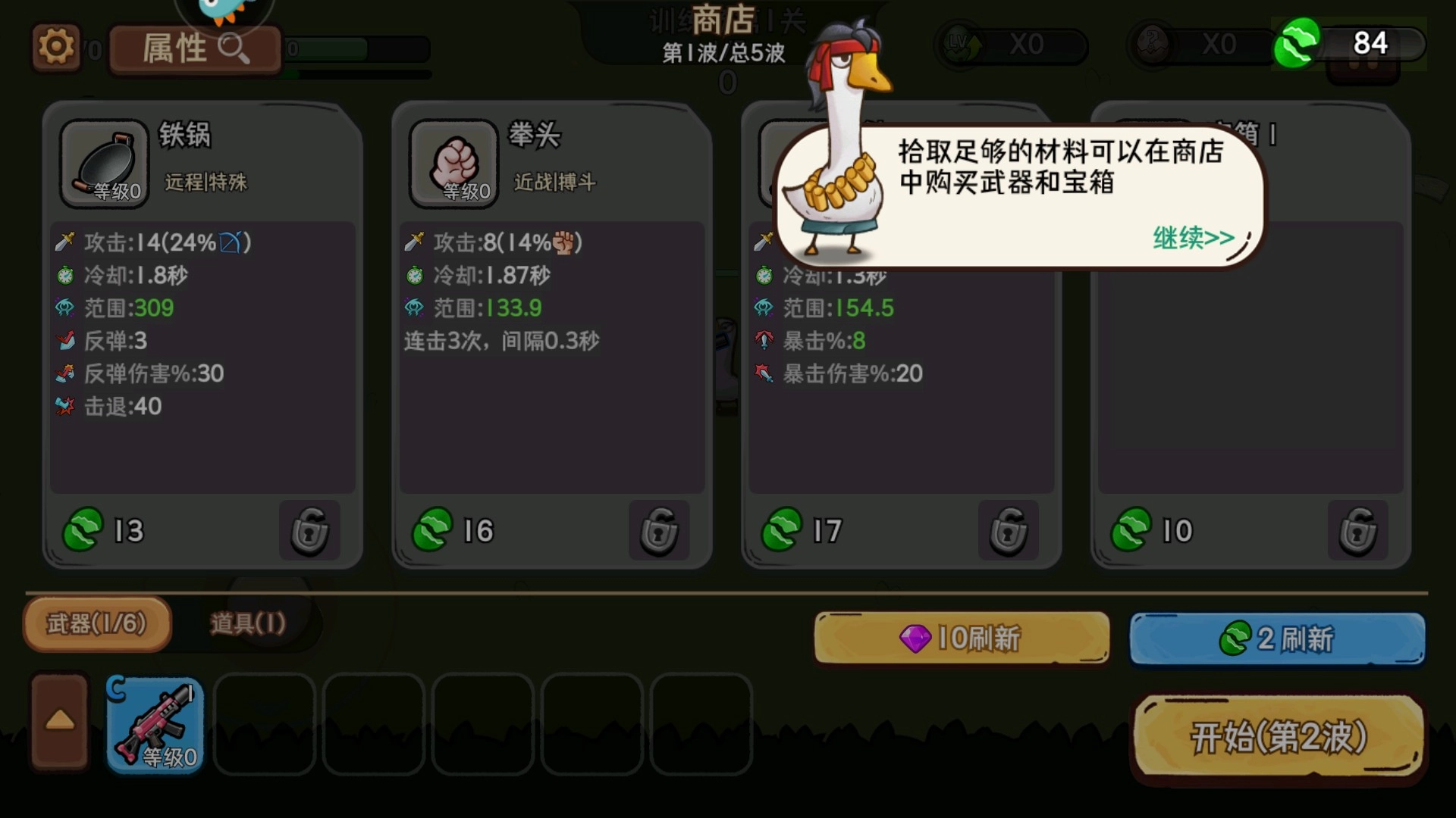 2、拾取足够的材料可以在商店中购买武器和宝箱;