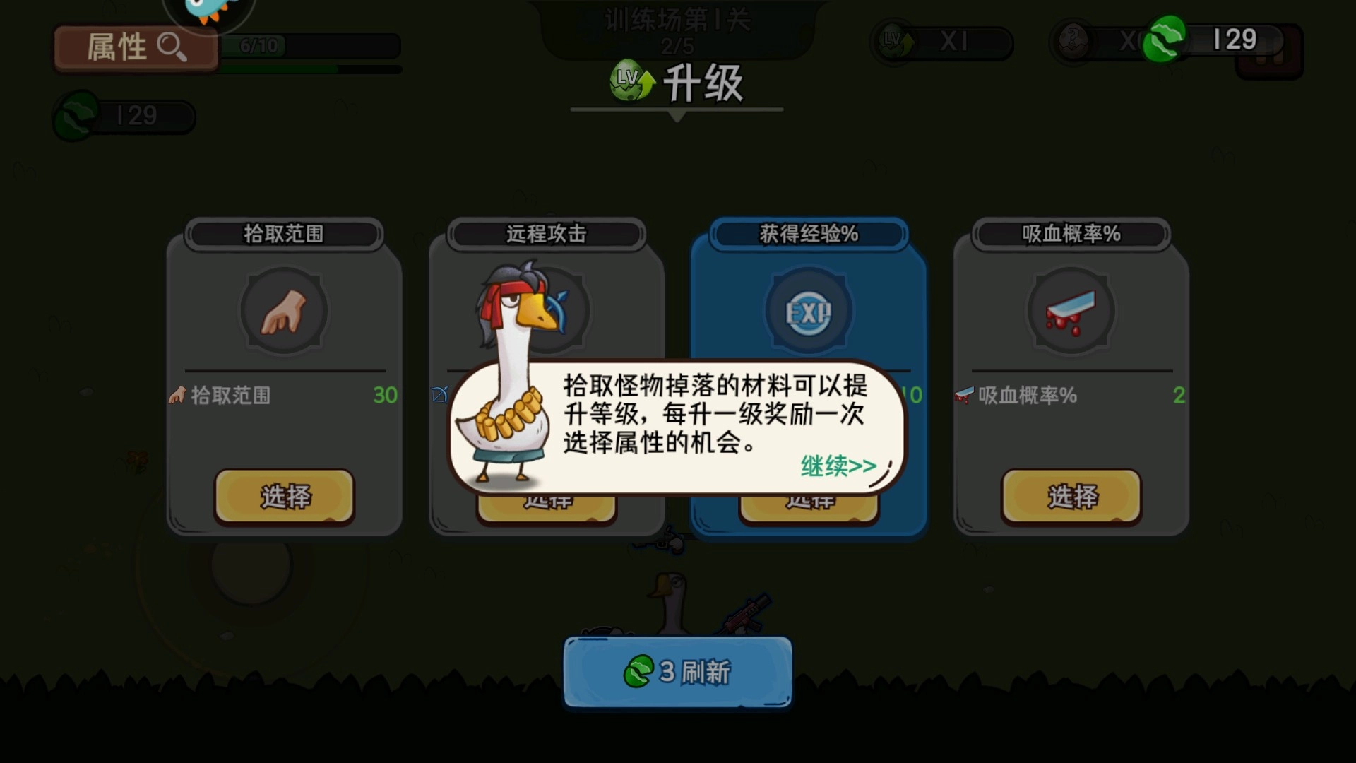 3、收集怪物掉落的材料能够提升等级,每次升级时都可以挑选一次属性奖励;