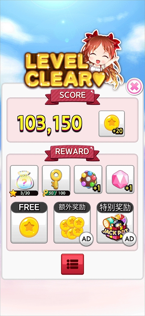 5、在有限的步数内完成通关目标后即可过关并获得奖励