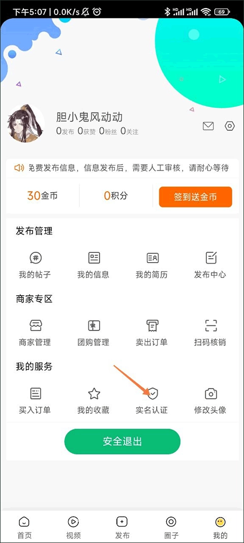 2、点击界面内的实名认证。