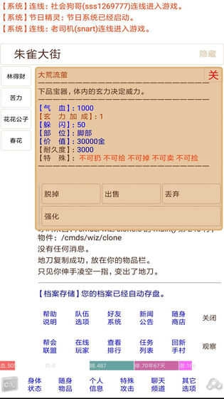 1.夺宝mud是一款纯文字武侠游戏,能让玩家体验到纯文字PK的独特乐趣。