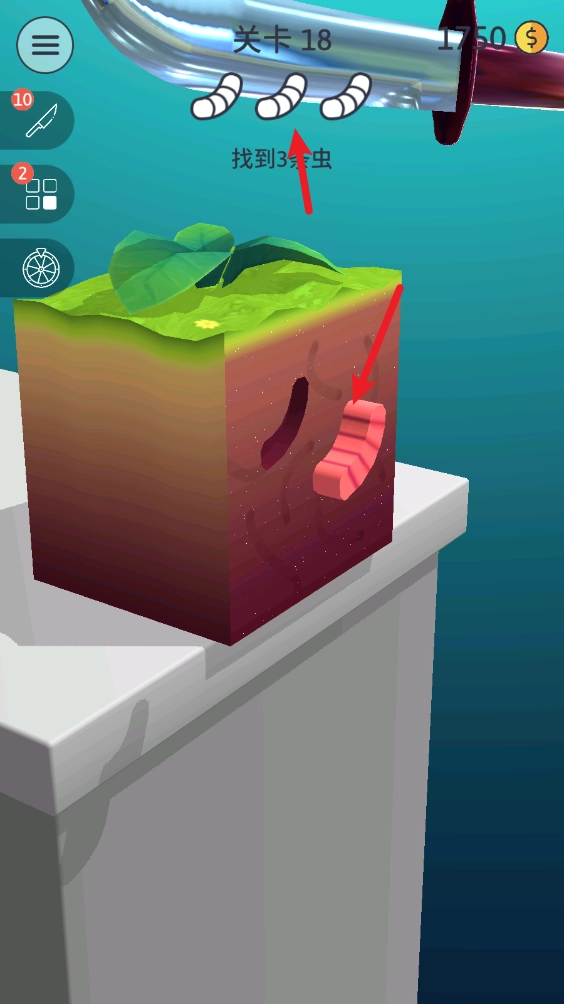 5、而这一关则是需要通过切割来找到隐藏的虫子。