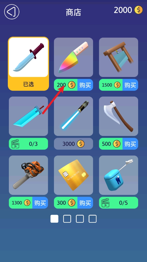 7、我们在关卡内可以点击左上角的小刀图标进入商店,在商店里能购买各类刀具进行更换。