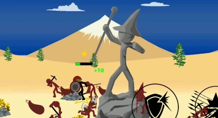 技巧:(需要手不残,抛物线计算准确,手机的屏完好)开局造一个弓箭手,控制,往前走几步,观察敌军的弓箭手,矿工等的位置,用超远距离冷射♂直接在己方雕像附近击毙对方。