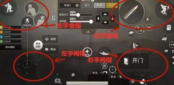 4、跳跃键移至屏幕右上角,右侧开火键设置成最大,放置地图和跳跃键中间区域,右手食指负责开火键和跳跃键;