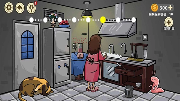接下来打开水龙头,把垃圾桶倒过来,点击陶瓷刀,再按开关启动通风口,最后点一下吊灯就能通关了。虽然只有两个选项,但成功概率要么是0%要么是100%——玩家选得对不对,直接决定能不能把地球上所有生物都感染。