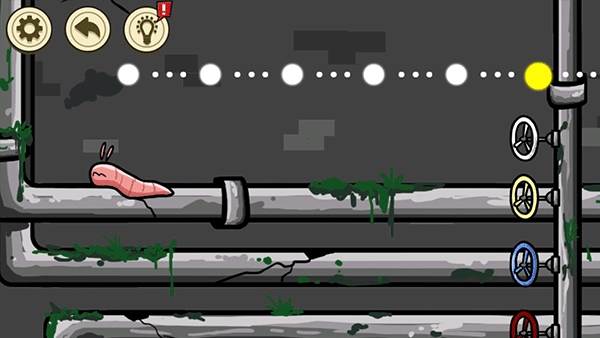 首先点击垃圾桶,再选择树枝,耐心等待小虫跳进洞里。之后按照红、蓝、黄、白的顺序依次点击这四个按钮,直到小虫顺利脱困,进入下一阶段。