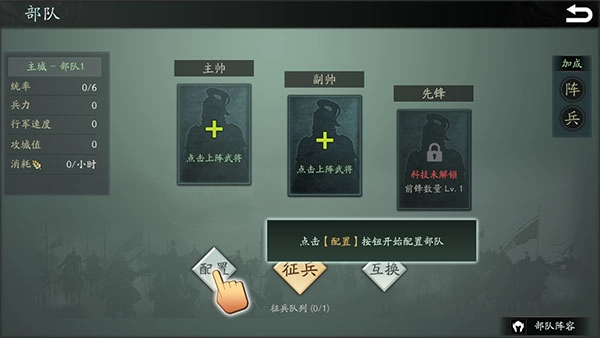 5、点击“配置”按钮,即可着手为你的部队开展战术配置工作。