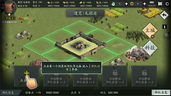 进入主城后,点击第一个部队栏位,查看该部队的详细信息。