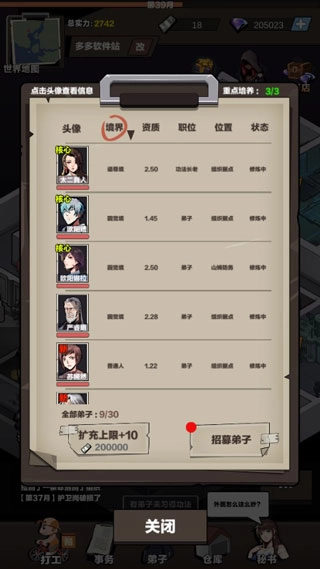 游戏主要就是通过招募资质出众的弟子来为你服务,无论是培养,还是派遣出去任务都需要弟子作为媒介。