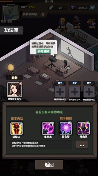 功法,功法决定了您的弟子能提升到多少的境界,如果功法室研究得慢,那么您的弟子整体实力都会提不上去。