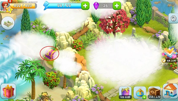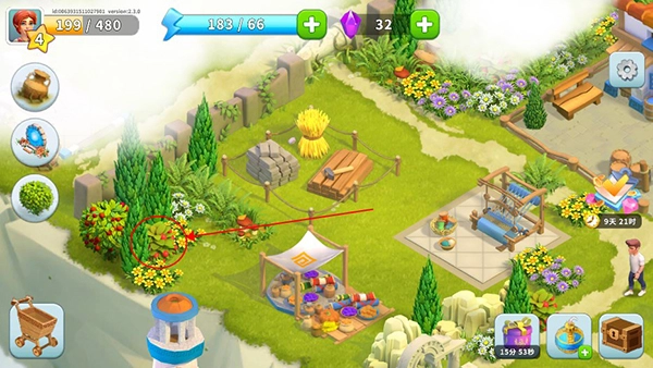 玩家可以在小岛上找到带有果子的植物并且点击;