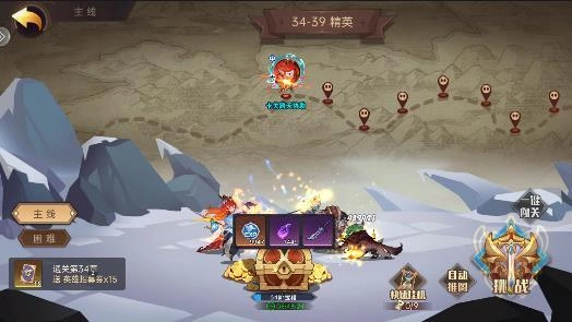 游戏里的副本有两种类型,一种是普通主线副本,另一种是困难主线副本。在通过不同章节后,挂机就能获取对应的养成资源。玩过卡牌游戏的玩家应该都清楚这一点,我就不多说了。不过要说明的是,这个游戏不是靠单一队伍推图的,当推进到指定章节时会解锁三队推图机制。我目前已经推到34章,算是达到毕业阶段了,三队推图功能和所有推图挂机资源都已经解锁完毕。