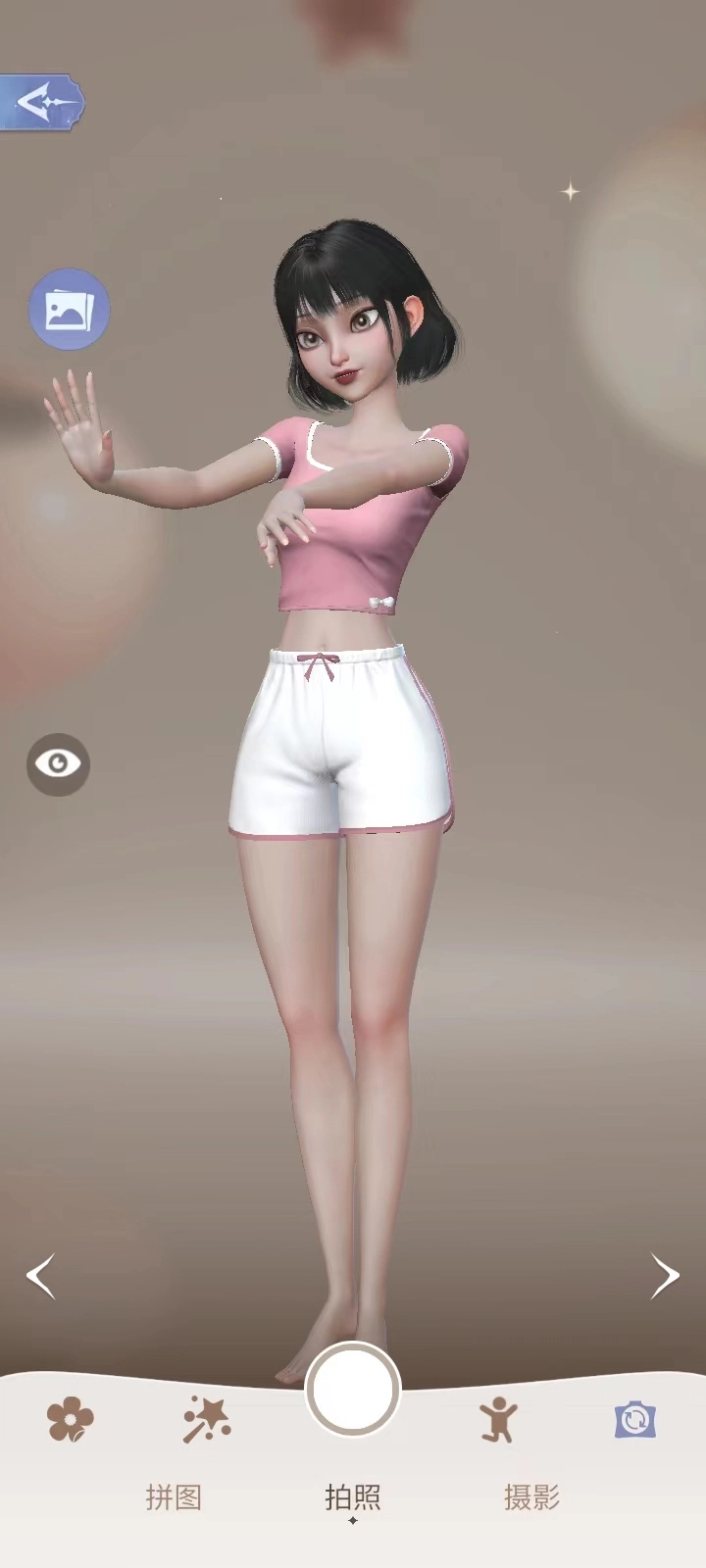 3、点击左边的照相机图标,即可用搭配好的服饰进行拍照;
