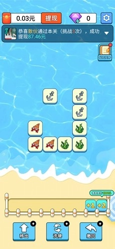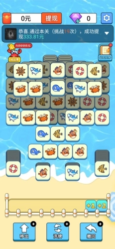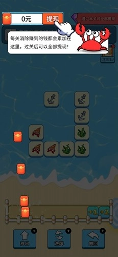 4、把三个或三个以上相同的海洋生物堆叠起来就能将它们消除。