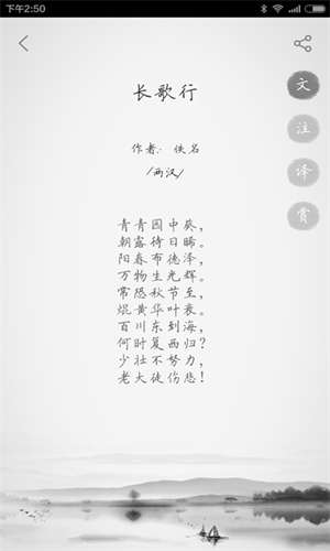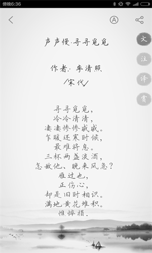3、详情查看:详情页内容详尽,支持同步查看注解,译文和赏析
