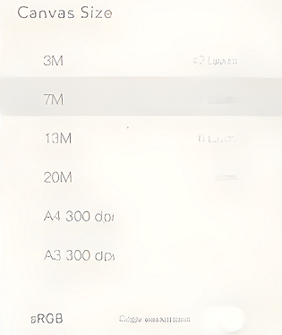1、选择任意分辨率画布大小,最高分辨率取决于您的设备功能