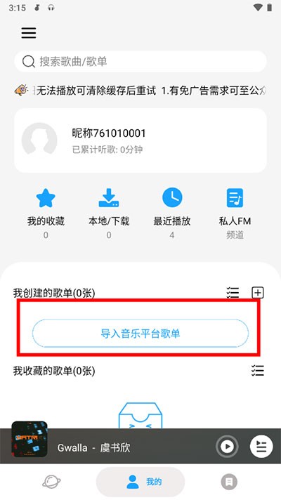 2)点击“导入音乐平台歌单”按钮,选择“Q音”,输入QQ号即可。