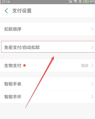 4、在支付设置里,找到“免密支付/自动扣款”点击进入
