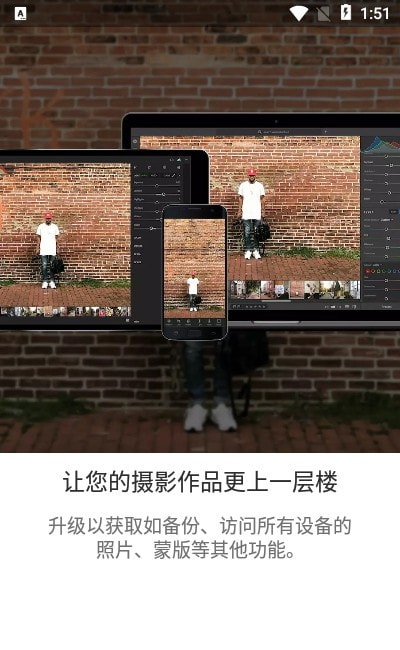 借助 Lightroom Premium 提升您的摄影水平!升级以解锁易于使用的照片编辑器工具,如修复画笔、选择性调整、几何工具、云存储。