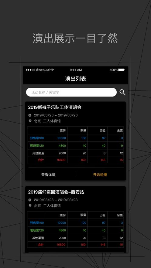 现场这款软件超实用,特别适合专业演出团队。所有管理者都能用它随时查看信息,连入座率都能看到。要是你从事这行,不妨试试这款软件,它有许多意想不到的贴心功能。