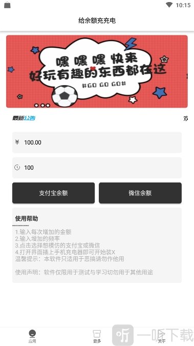 充电余额是一款非常有趣的系统工具类手机软件。只需插上充电器,就能为微信和支付宝充值金额,既能用来恶搞朋友,又能丰富你的生活。它操作十分简单,且没有任何广告干扰你使用这款软件。